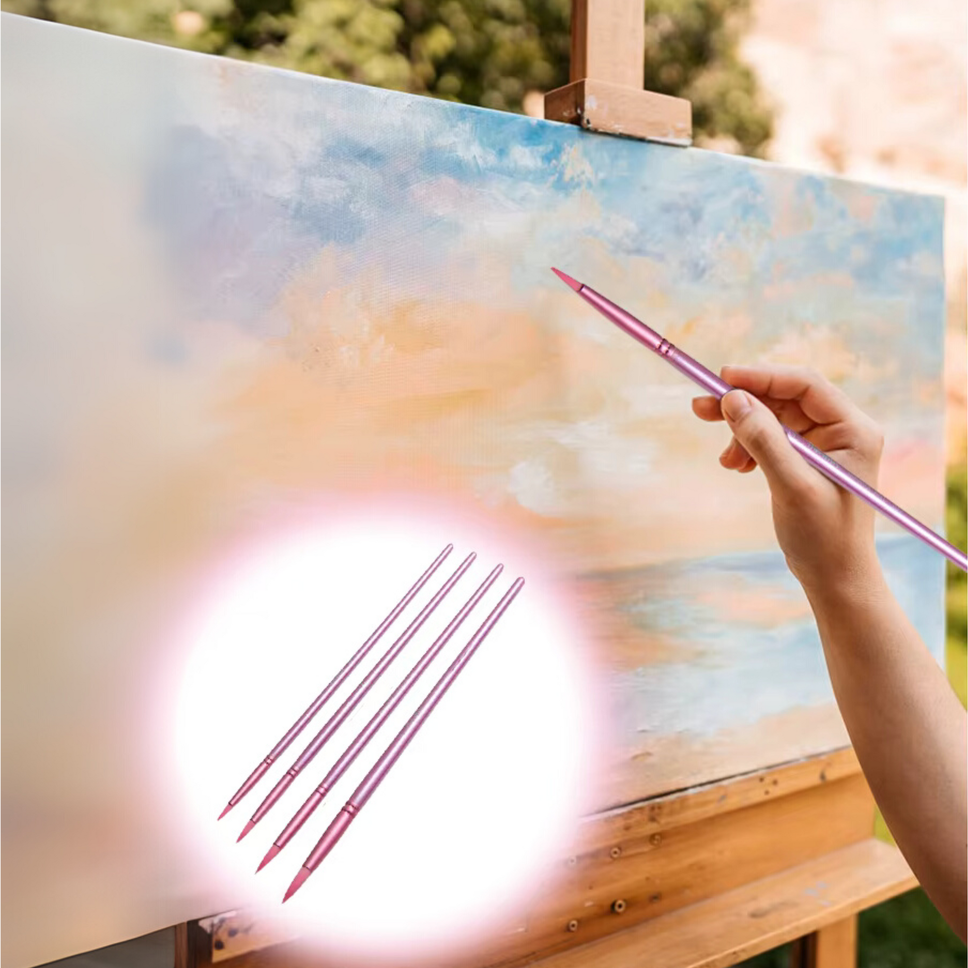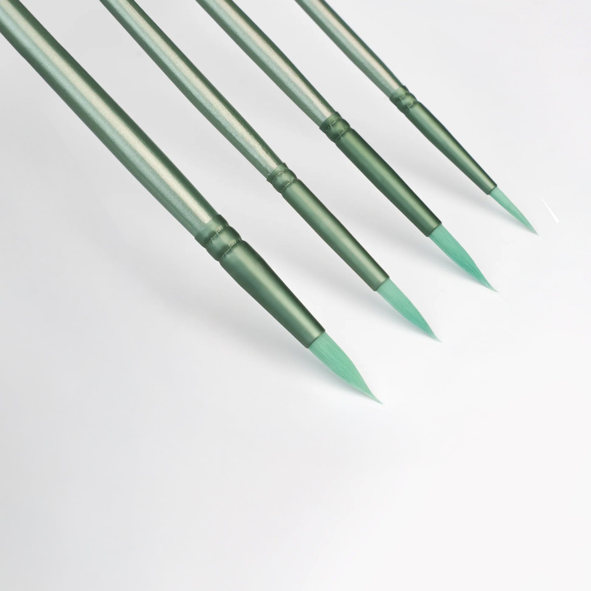Essentials 4-Piece Nylon Paint Brush Set – Green/Pink- Premium Artist Brushes for Acrylic, Gouache, and Paint-by-Number Kits